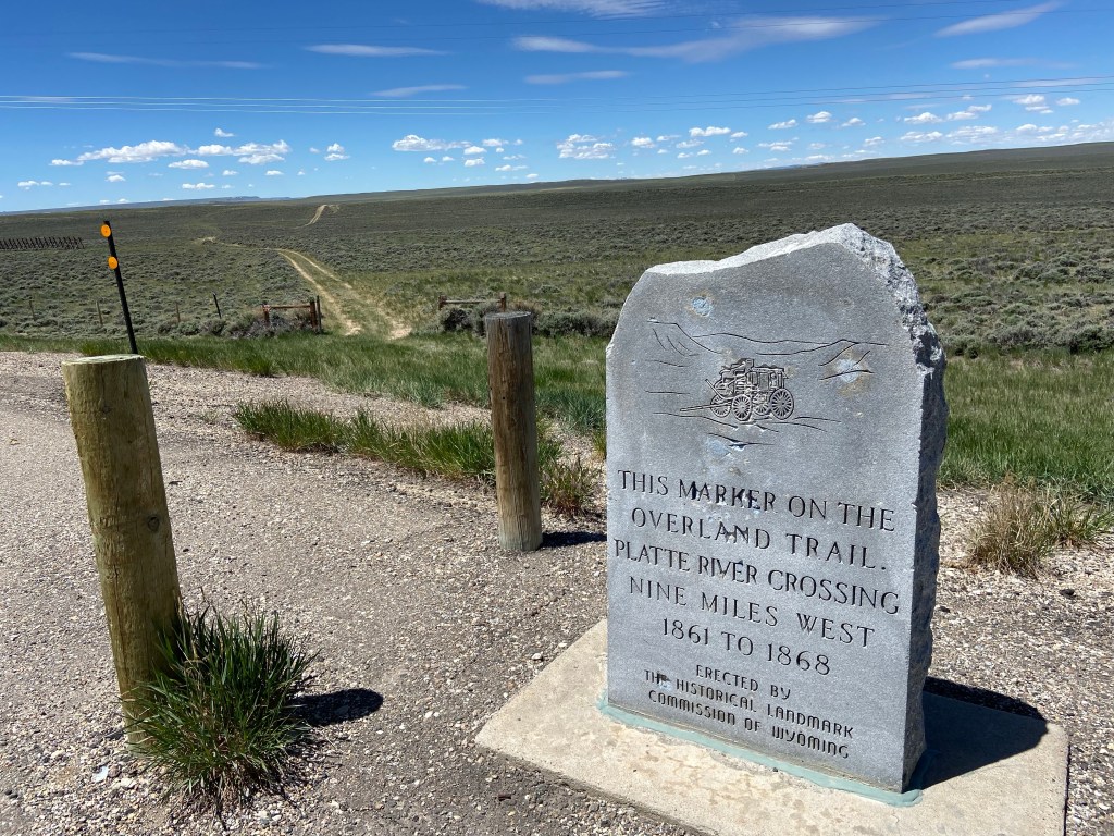 Yesterday was a mix of all kinds of roads and experiences. I left the campground on the west side of Rawlins and rode through town. I had been in so many small towns with few services that riding Rawlins felt odd. Rode past a bunch of fast food restaurants, Walmart, little shopping malls, and there was traffic. I then took a two lane road to Sinclair WY and had an industrial experience.. This is the home of Sinclair oil and gas stations. If you have been out west you would know them because of the green dinosaur emblem and the green dino statue they have at their locations. I rode right past their huge oil refinery and truck filling location on one side and a rail yard filled with oil cars and lots of equipment on the other. The next stretch of road was a bit intimidating when looking at the maps. The only way to get to the route heading to Colorado was to ride on I-80 for about 12 miles. This is part of the official TransAmerica Route as there are few paved roads in that area. Fortunately, I-80 in that area allows bikes and walkers and they have a 12’ smooth and paved shoulder to accommodate. It turns out it wasn’t any worse than many of the busier 2 lane roads we were on with logging trucks or RV’s. After a few minutes I realized it wasn’t too bad… just noisy! I was very thankful it was sunny again, (Yep- second sunny day in a row) if it had been raining the spray from the vehicles would not have been fun. I even found that when there were trucks in both lanes and they passed me, the air behind the trucks pulled us ahead with a little burst of speed. It was like getting sucked forward. That was cool!