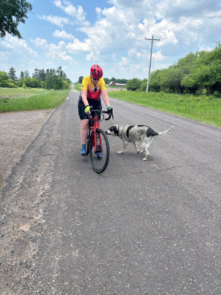 A note about dogs and bikes…. I was a bit worried going through farm country where few people ride. Sometimes the farm dogs like to chase (and sometimes bite) riders. It’s an all too common occurrence and hard to deal with without crashing or getting bit. I really like dogs, but when one comes out barking viciously and goes to bite… I no longer like that dog – so I carry some pepper spray meant to deter them. I had mine ready for the two dog encounters today. The first encounter was with 4 very well fed (round) labs who ran towards the road and all gave a “come back and pet us kind of bark”.