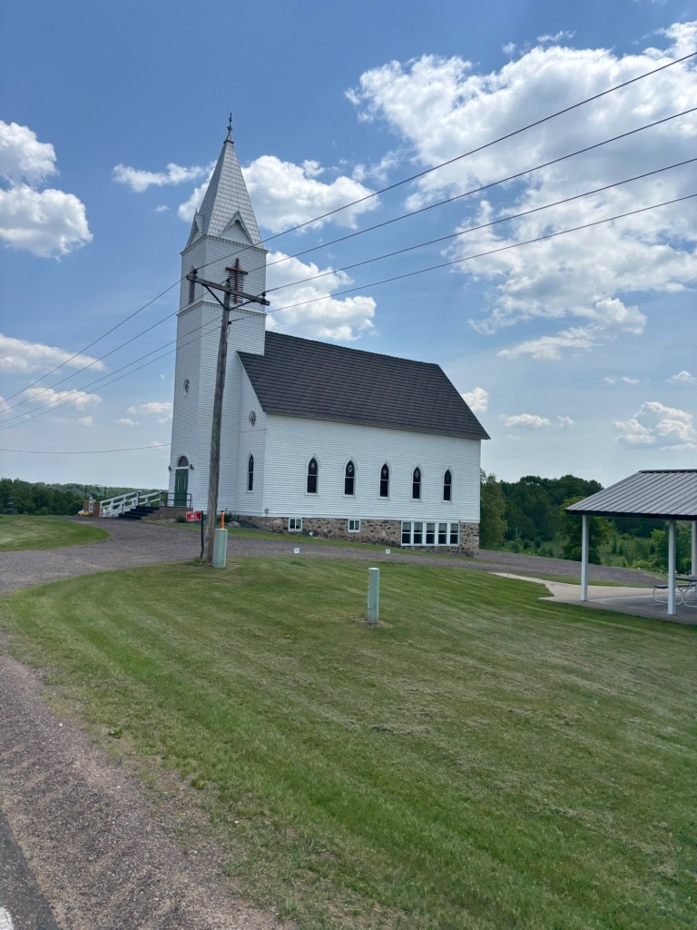 Rode… a closed service road to avoid traffic, past a ski lodge, 14 miles on Stower Seven Lakes Trail – where we saw 7 different lakes, read about the origin of the Soo Line Railroad, hilly country roads, saw lots of horses and a cool old church, dipped into Amish country, scared deer off the road (so I didn’t run into them), met a friendly dog, saw a huge maple syrup farm, had an AMAZING lunch (prepared by the AMAZING Chef Kelly) at mile 41 along the side of the road and arrived in Chetek about 5:15 pm.